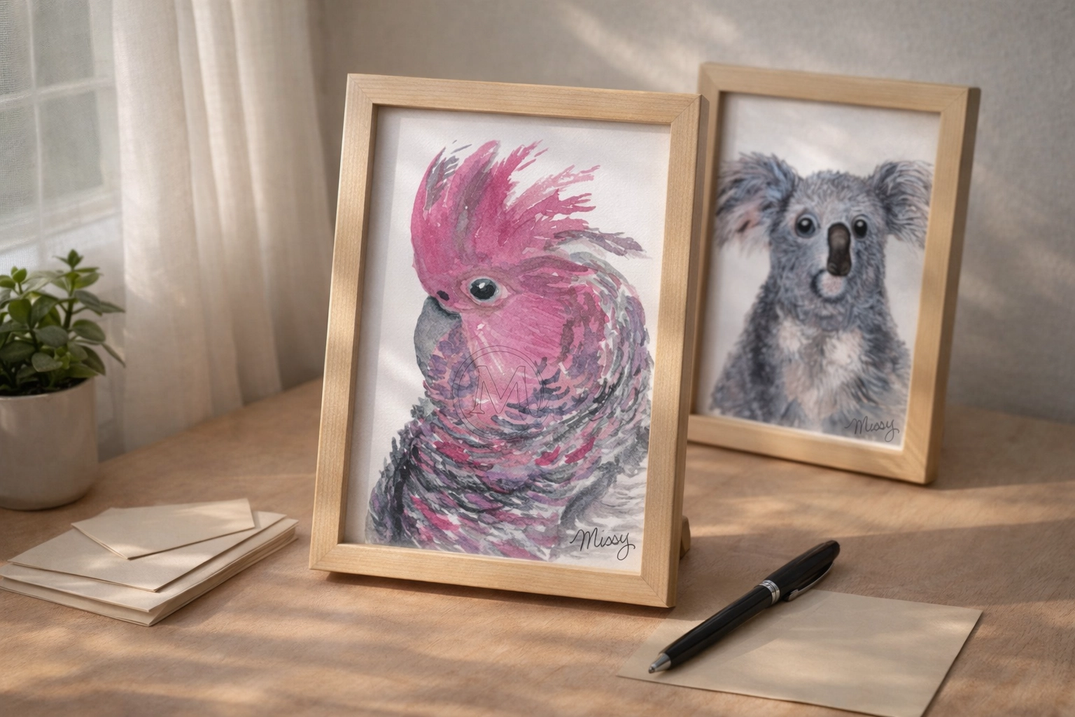 Many lower-cost boxes use stock imagery or digital designs that lack that personal touch. At Missy, every single piece starts as a hand-painted watercolor. Whether it’s the expressive eyes of an ostrich or the delicate feathers of a burrowing owl, the textures and "happy accidents" of watercolor painting are preserved in every print.
