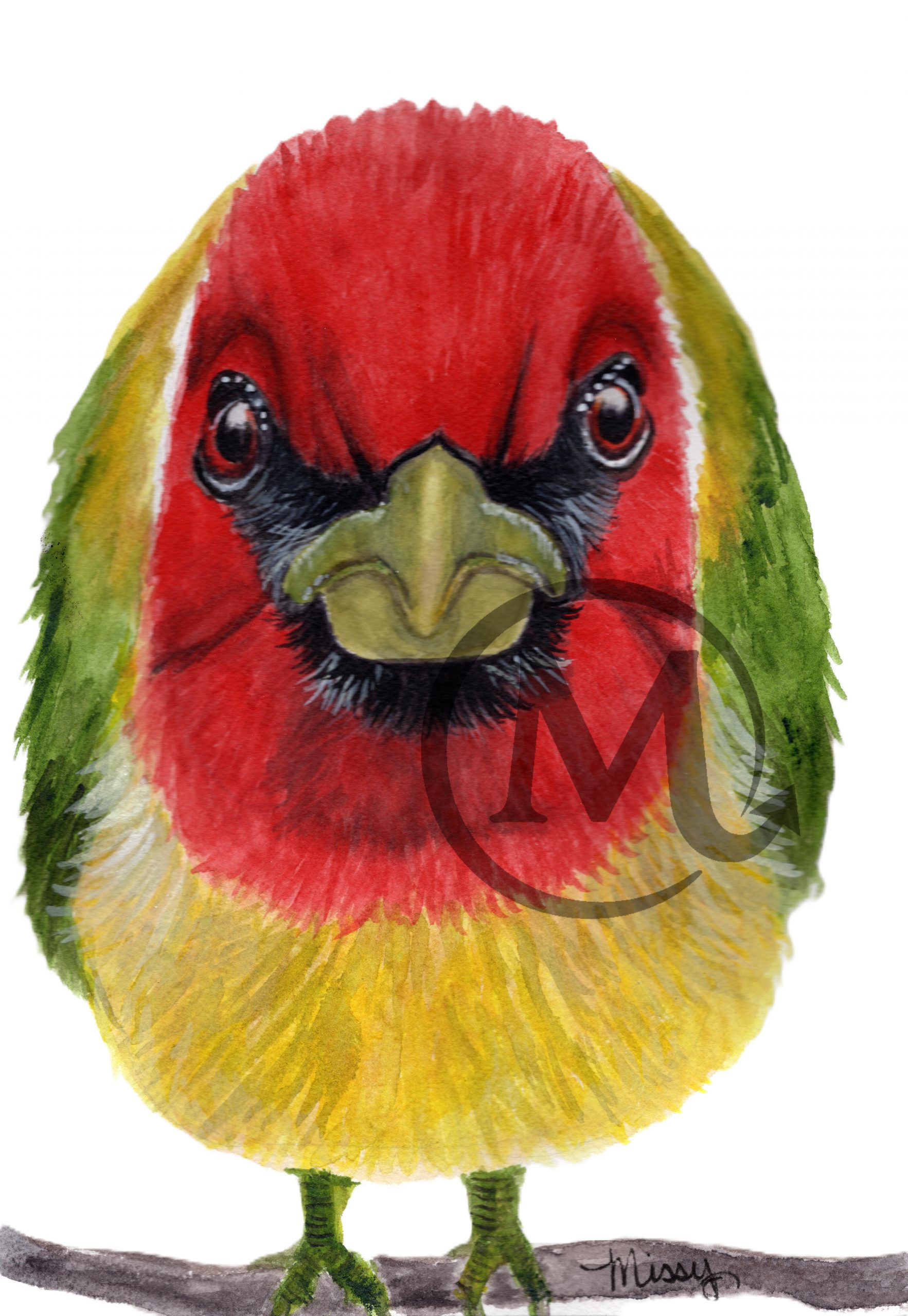 Barbet the Bird stared everyone down like a tiny feathered boss, even though he was secretly furious that his snacks were organized by *size* instead of *flavor*. In protest, he waddled off dramatically, tripped over his own feet, and pretended it was all part of the plan.
