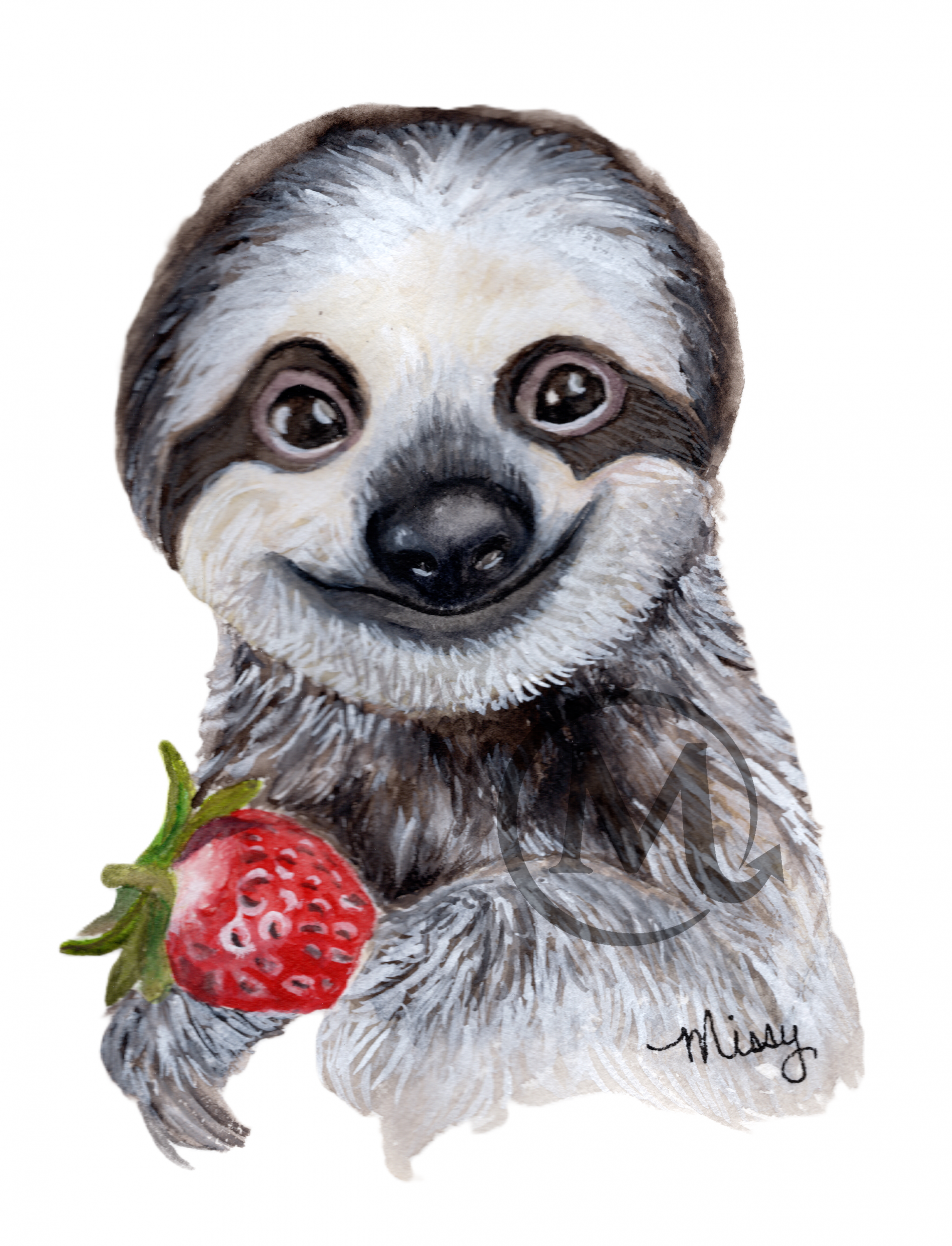 This is Molasses the sloth—gentle, sweet, and proudly the slowest strawberry thief in the whole forest. He takes exactly one tiny nibble every five minutes, because according to him, “good things should last as long as possible.”